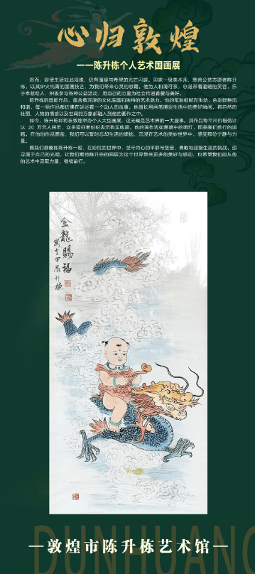 超百万人民币的市场估值,是对《金龙赐福》艺术价值与收藏潜力的高度认可。在中华传统文化中,龙象征着权威、吉祥、力量与好运,是跨越千年的文化图腾,而以龙为题材的国画作品,始终是收藏市场的热门品类。陈升栋的《金龙赐福》跳出传统龙纹绘画的刻板框架,创新性融入敦煌艺术的灵动笔法与稚子怀珠的吉祥意象,既延续了“龙”这一文化符号的深厚底蕴,又以当代审美视角赋予其全新生命力。作品兼具笔墨功底、文化内涵与吉祥寓意,在当代艺术市场中实属稀缺资源,收藏这幅作品不仅是拥有了一件不可多得的国画瑰宝,更是收藏了一份象征祥瑞、福泽与传承的精神财富,其艺术价值与投资潜力必将在岁月沉淀中持续攀升。