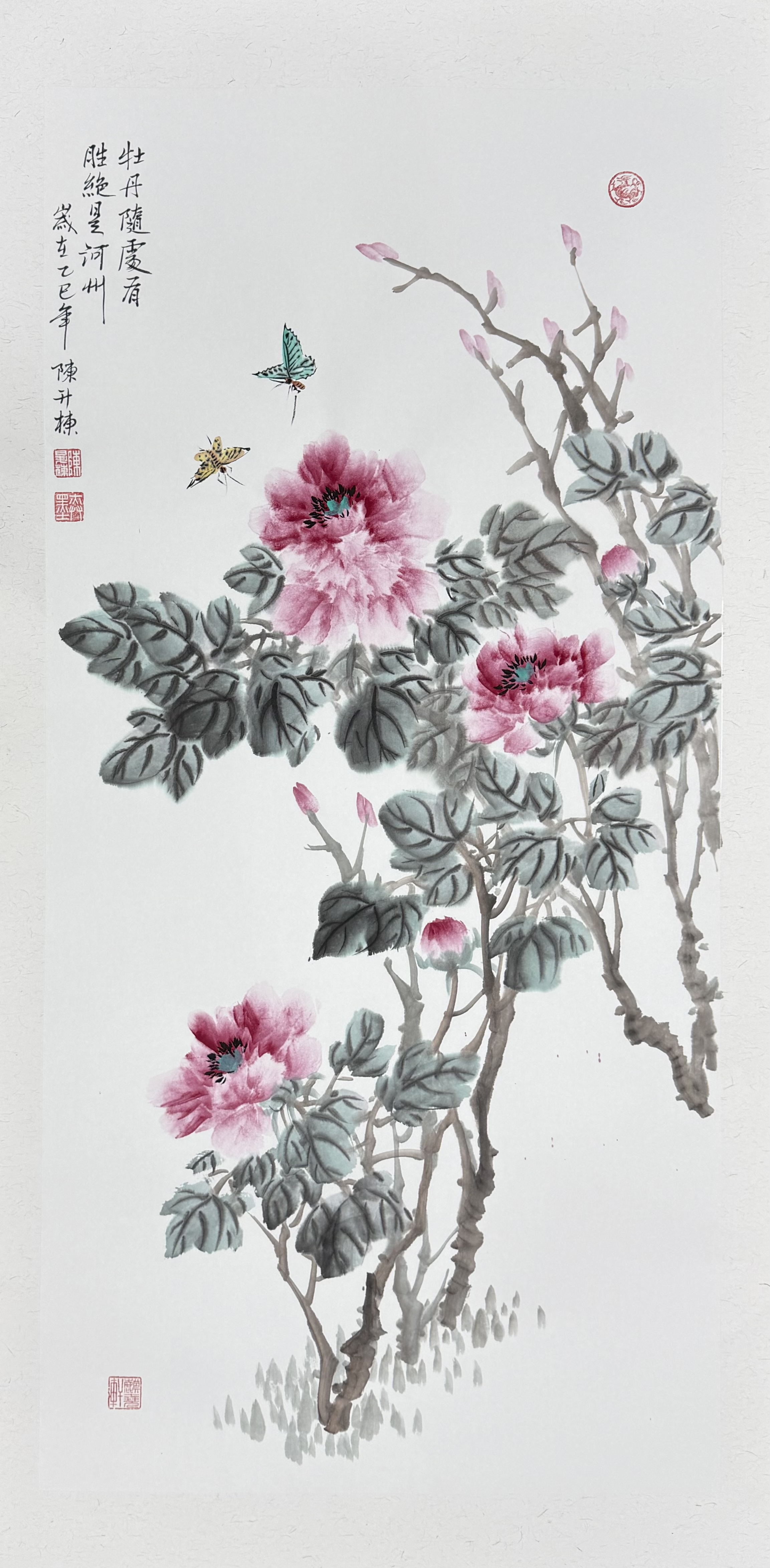 数十年来,陈升栋先生深耕国画领域,坚守传统文脉且不囿于成规,在牡丹题材创作中不断探索新意,每一幅作品都凝聚着对花鸟之美的独到洞察与对笔墨之韵的极致追求。从《蝶舞牡丹》的灵动雅致,到即将启幕的“中国牡丹王”主题展厅,陈升栋先生正以笔墨为桥,让牡丹的国色天香跨越时空、浸润人心。这幅新作既是他艺术造诣的鲜活见证,更是未来展厅的精彩预告,待展厅落成,便可在笔墨繁花中,尽览“中国牡丹王”的艺术传奇。