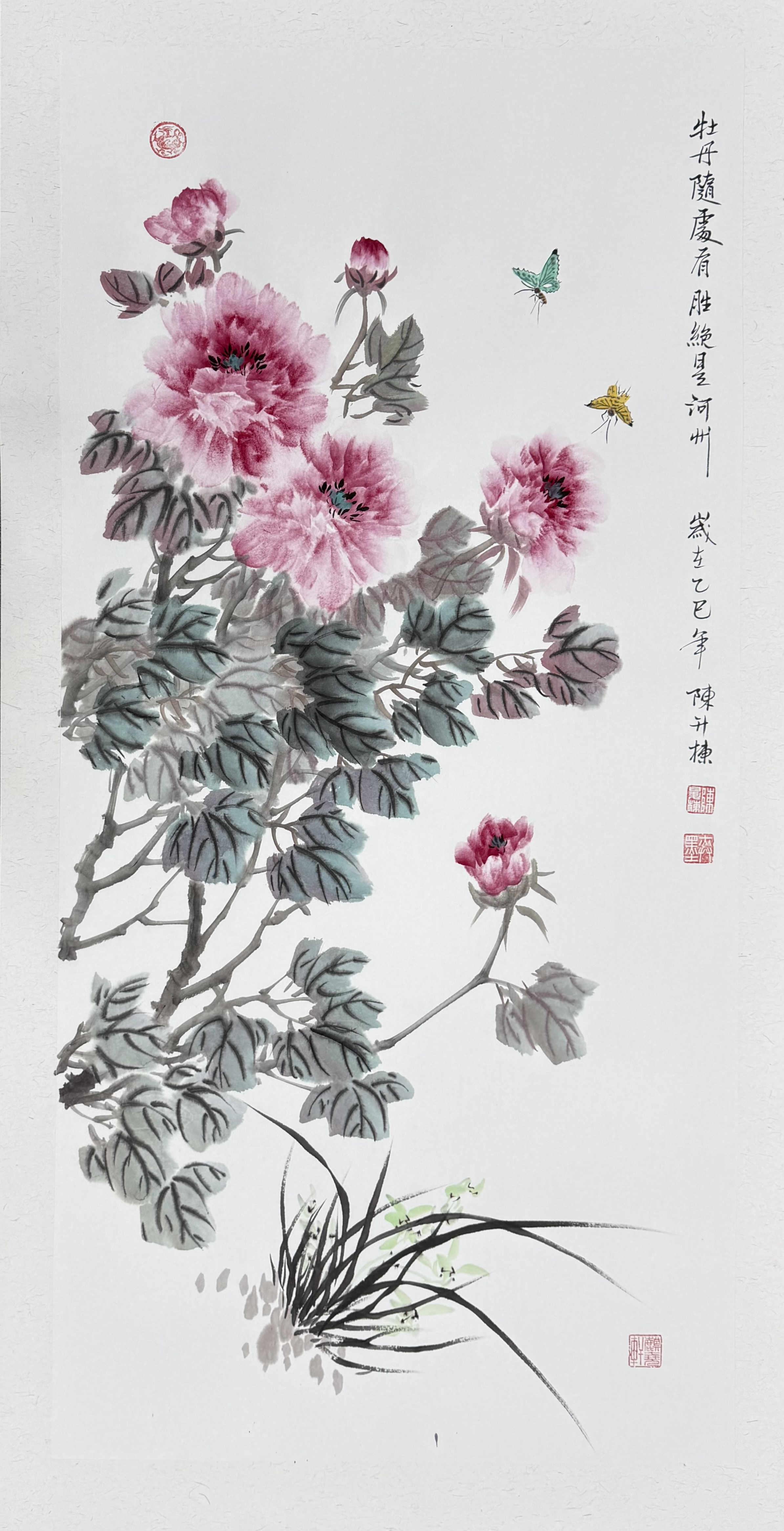 从单幅牡丹作品的精雕细琢,到牡丹主题展厅的整体打造,陈升栋先生始终以笔墨为媒,坚守传统国画文脉并不断创新。《蝶伴牡丹》以蝶伴丹芳、兰衬晓春绘就清雅之景,传递出自然和谐的美好意趣;而即将启幕的“中国牡丹王”主题展厅,将以满室牡丹佳作,为艺术爱好者打造一场沉浸式的牡丹艺术盛宴,让更多人领略传统国画中牡丹题材的独特魅力。