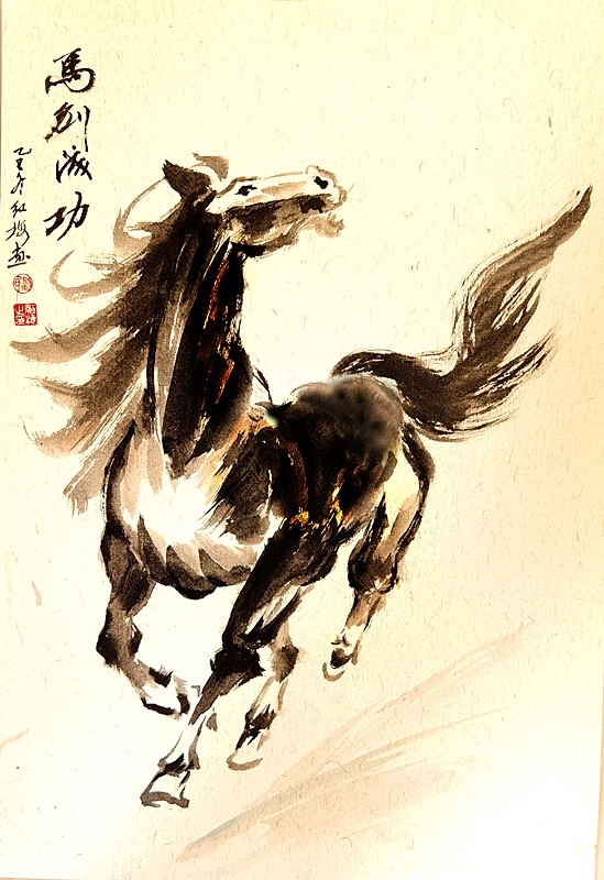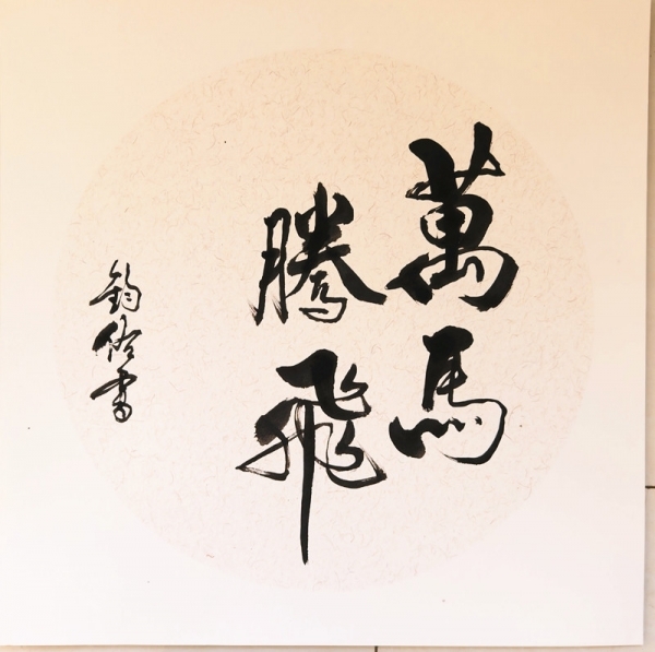 作为团队成立两年以来的第35场公益奉献活动,现场墨香氤氲、暖意融融。团队成员纷纷挥毫泼墨、凝神创作,共精心完成国画(卡纸)作品30幅。身为市级美术教研员的笔者率先提笔,以大写意之法绘就骏马图。画中骏马昂首扬鬃,四蹄腾跃,马尾如墨瀑飞卷,尽显奋蹄疾驰、一往无前的奔跃之姿。笔墨简劲洗练,略去繁冗修饰,以浓淡交织的墨色勾勒出骏马的雄健风骨,既彰显了写意画“以形写神”的艺术精髓,更寄托了昂扬奋进、砥砺前行的美好愿景,与船厂职工实干笃行、精益求精的精神气韵相得益彰。