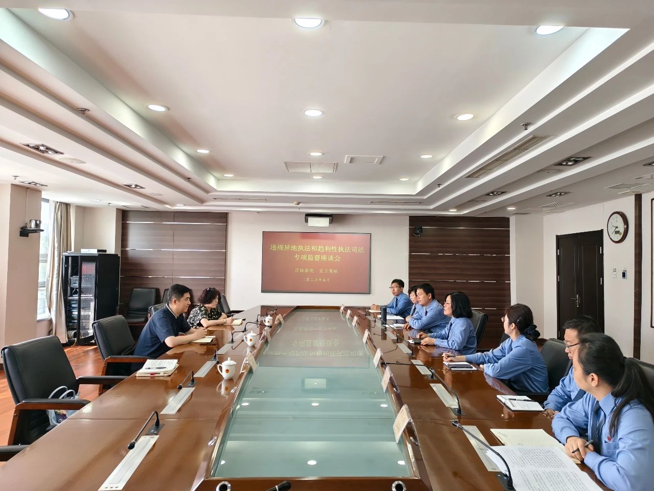 为深入推进违规异地执法和趋利性执法司法专项监督工作,近日,河东区工商联与区检察院召开专项监督工作座谈会。区检察院党组书记、检察长李萍,区委统战部副部长、区工商联党组书记马俊猛出席会议,区工商联、区检察院相关负责同志参加会议。