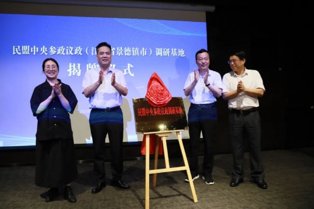 2023年6月14日,民盟中央参政议政(江西景德镇)调研基地揭牌仪式在景德镇市陶溪川举行。全国人大常委会委员、民盟中央副主席张道宏,江西省政协副主席、民盟江西省委会主委辜清,中共江西省委统战部分管日常工作的副部长高鹰群,民盟中央副秘书长张峰等出席仪式。