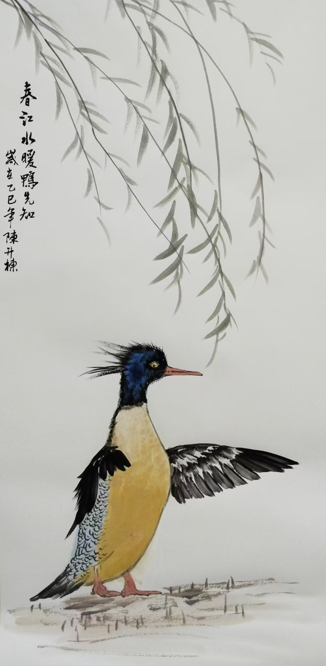 在这样的背景下,陈升栋先生以中华秋沙鸭为题材创作的这两幅国画作品,意义非凡。他以炉火纯青的绘画技艺,将中华秋沙鸭的神韵与风采完美地呈现在宣纸之上。
