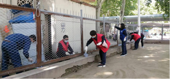 经过3个多小时的不懈努力,170多平方米的护栏全部完成粉刷。大家衣服上、手上都不同程度沾上了灰色油漆,但看着焕然一新的门球场护栏,都露出了满意的笑容,也赢得了周围群众的一致称赞。