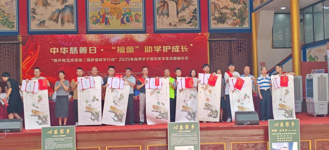 2024年临夏市陈升栋艺术馆奖学颁奖典礼在仓山区城门镇胪雷村胪峰陈氏祠堂举行,表彰了高考成绩优异的23名胪雷村学子。当日共计发放奖金3.3万元,并赠送学子们每人一幅国家一级美术师陈升栋的精美国画作品。陈升栋先生一直怀揣“达则兼济天下”的古道热肠,承继恩师吴东魁的慈心善念,从捐赠幼儿园、捐赠百万图书工程、每年资助大学生、帮助贫困儿童,融企业家、艺术家、慈善家三种身份为一体。多年来陈升栋先生保持初心不改、矢志不渝的精神状态,继续为文化事业和教育事业贡献自己的力量的行为让人钦佩。