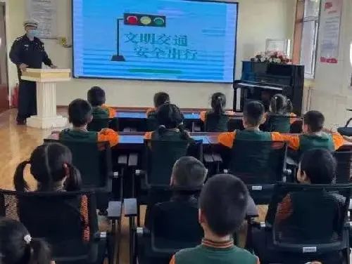 活动伊始,交警支队六纬路大队的交警为小朋友们介绍了文明交通的重要性,希望小朋友们自觉养成遵守交通法规的良好习惯,成为文明交通的实践者、参与者、宣传者、支持者。随后,播放了宣传文明交通的动画视频,向小朋友们详细讲解了出行应该注意的安全常识,包括过马路、乘车期间的安全注意事项等内容,让小朋友们做到文明出行的同时,当好交通安全宣传员,监督父母以及亲人朋友遵守交通规则,骑乘电动车戴好安全头盔。活动最后,幼儿园的小朋友们演唱了交警大队自编自导的歌曲“你是一颗星”,通过整齐划一、坚定有力的童声歌曲,为辛勤的交通民警献礼,争当遵守交通规则、文明出行的小卫士。