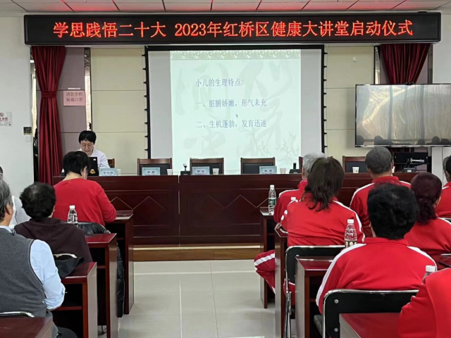 为深入贯彻落实党的二十大精神,全力推进健康中国建设,落实健康天津行动要求,近日,区卫生健康委在三条石街道尚都家园社区举办2023年度红桥区健康大讲堂启动仪式,并联合三条石街道办事处、中医药研究院附属医院开展首场健康讲座。