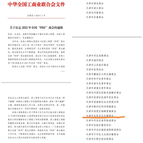 营销环球网讯 日前,全国工商联通报荣获2023年全国“四好”商会名单。天津市北辰区北仓镇商会荣获2023年全国“四好”商会称号,成为该领域的典范和表率。