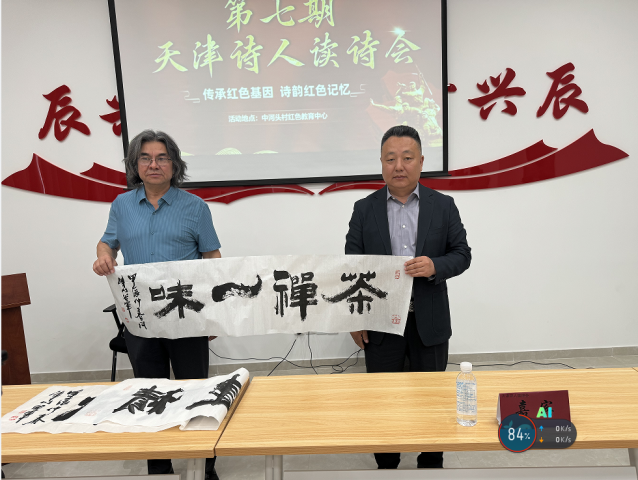 王文夫先生代表“天津诗人读诗会”为狄力木拉提·泰来提老师赠送谷军老师的书法作品;冷雪松老师代表“天津诗人读诗会”向杨波老师赠送谷军老师的书法作品。罗广才老师为本期读诗会做总结发言。