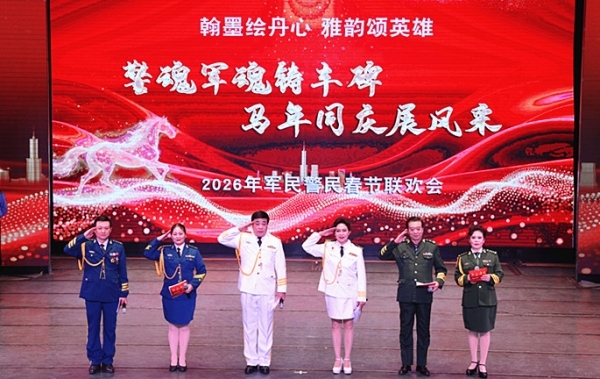 中国边唱边画独创第一人祝恩霜(曾是航天员杨利伟的战友,从部队转业到公安队伍)现场表演。整场活动气氛热烈,节目内容丰富多样,既有深情讴歌英雄的文艺演出,也有展现传统文化魅力的书画展示。活动不仅弘扬了爱国主义精神,也促进了军民、警民之间的情感交流,为新春佳节增添了浓厚的文化氛围。