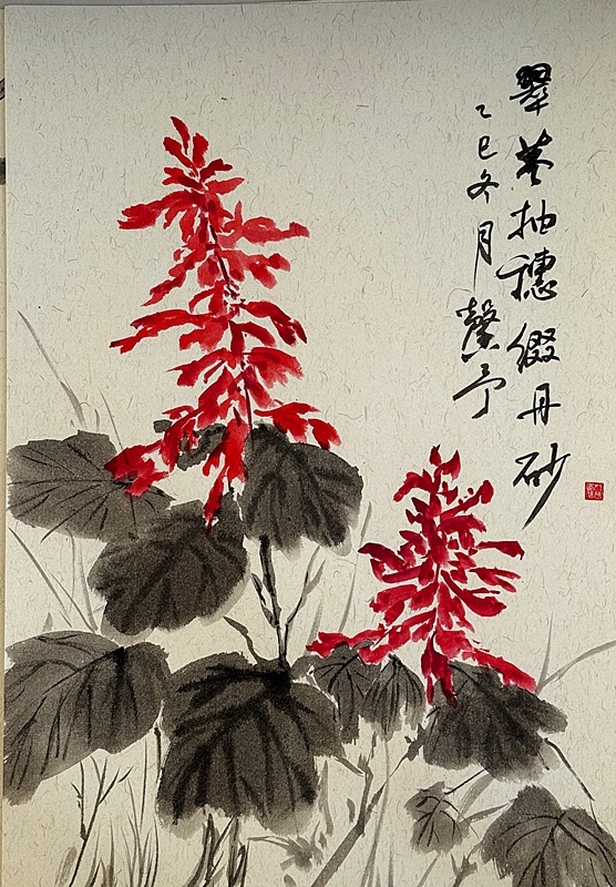 作为团队成立两年以来的第35场公益奉献活动,现场墨香氤氲、暖意融融。团队成员纷纷挥毫泼墨、凝神创作,共精心完成国画(卡纸)作品30幅。身为市级美术教研员的笔者率先提笔,以大写意之法绘就骏马图。画中骏马昂首扬鬃,四蹄腾跃,马尾如墨瀑飞卷,尽显奋蹄疾驰、一往无前的奔跃之姿。笔墨简劲洗练,略去繁冗修饰,以浓淡交织的墨色勾勒出骏马的雄健风骨,既彰显了写意画“以形写神”的艺术精髓,更寄托了昂扬奋进、砥砺前行的美好愿景,与船厂职工实干笃行、精益求精的精神气韵相得益彰。