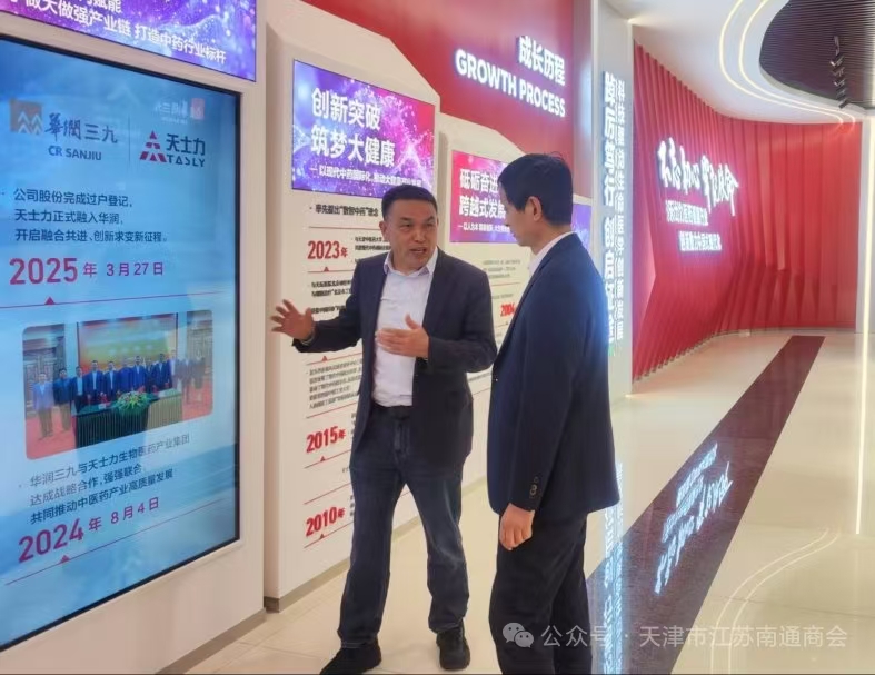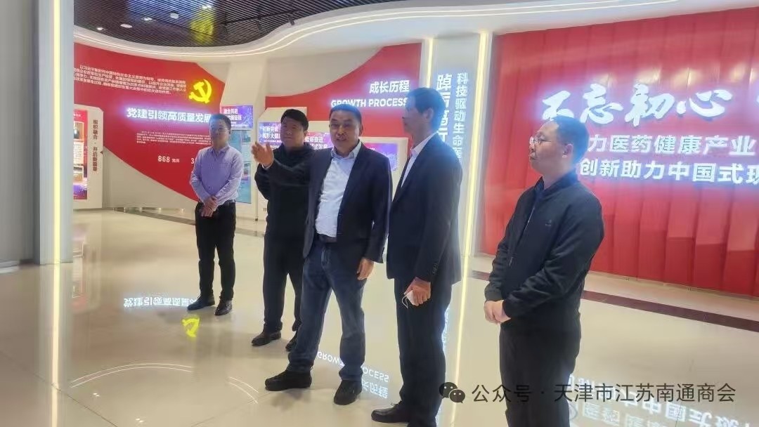 近日,南通市工商联党组成员、副主席张伟其,联络部副部长陶道佩一行,到访天津市南通商会会长单位——天士力集团开展考察调研与工作指导。天津市南通商会会长、天士力大健康产业投资集团党委副书记、董事局副主席,天士力数智健康产业集团总经理朱永宏,商会秘书长、元立大富(天津)科技有限公司董事长陈建兵全程陪同考察并参与座谈交流。