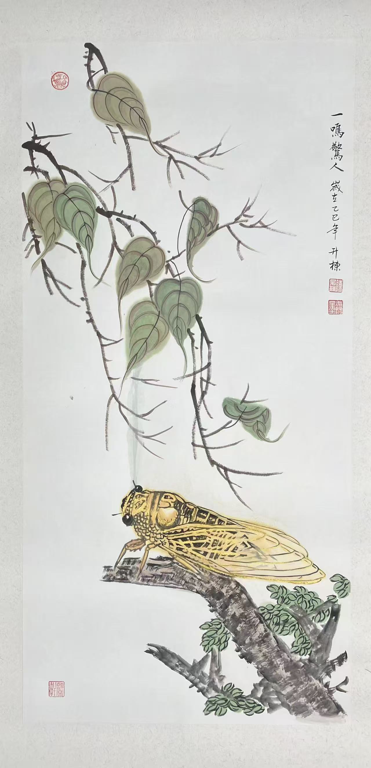 营销环球网讯 国家一级美术师、陈升栋艺术馆馆长陈升栋,以四幅《一鸣惊人》组画为笔墨长卷,将蝉“蛰伏-蓄势-振鸣-惊世”的完整生命轨迹凝于尺幅之间。他借蝉为喻,以墨为骨、以金为魂,在浓淡转合与笔锋起落里,写尽生命沉淀后迸发的磅礴力量,让每一幅作品都成为墨与魂的共振,更让“蝉鸣”超越自然声响,化作叩击心灵的精神呐喊。