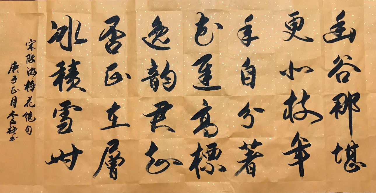 诗与书相生,墨与意相融。《观梅花诗》的清雅诗意,在李强先生的笔墨诠释下更具隽永韵味,字句间的梅香暗香,仿佛随笔墨流转萦绕不散,字里行间皆是温润的文人意趣与梅的高洁品格。身为非物质文化遗产榜书代表性传承人,李强先生以笔墨为媒,梅魂为骨,让榜书艺术与咏梅诗意浑然相融,其书法熔古铸今,自成一格,于笔墨起落间彰显深厚的文化底蕴与高超的艺术造诣。整幅作品观之赏心悦目,品之回味无穷,既将梅花的神韵与诗意的清雅展现得淋漓尽致,更以笔精墨妙的书法艺术,让观者在赏字品诗间,仿佛置身于疏影横斜的梅林之中,感受翰墨与梅香交织的独特美感,领略非物质文化遗产榜书艺术的独特魅力,尽显传统书法艺术与经典咏梅诗意的融合之妙。