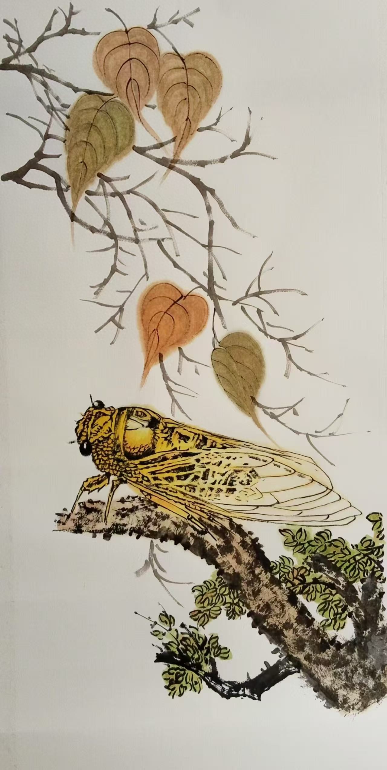 陈升栋的艺术始终在自然中寻找人文共鸣,这幅《秋蝉》没有浓烈的色彩,却以细腻的笔触捕捉到秋蝉与秋光的对话,将对生命的理解、对岁月的感悟凝于尺素之间。他笔下的秋蝉,不仅是秋日的信使,更是当代人在喧嚣中寻求从容的精神寄托。这份沉静的创作初心,延续了他“以艺术传递温度”的理念,正如他在慈善公益中以笔墨传递爱心,这幅画作同样以秋蝉的悠然姿态,让观者在墨韵与留白中感受到生命的从容与力量。