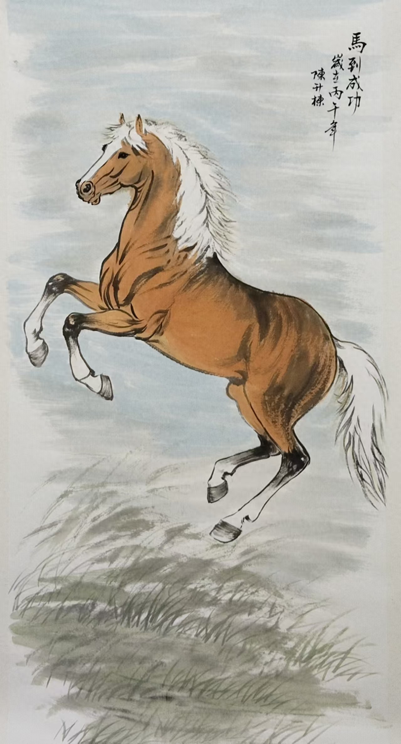 《马到成功》图整体格调端庄、气韵生动,适合艺术交流、空间陈设与收藏品鉴,是兼具传统韵味与时代气息的国画作品。