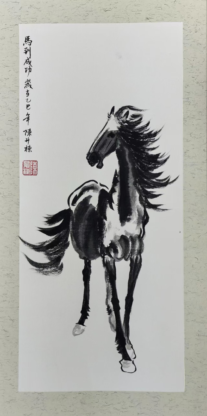 在创作立意上,陈升栋先生将传统文化中的吉祥内涵与时代精神巧妙结合,“马到成功”自古便是人们对事业顺遂、前程似锦、诸事圆满的美好祈愿,他以马喻志,以画传情,把这份美好的期许化作一幅幅生动的丹青佳作,让每一幅《马到成功》作品,都不仅是视觉上的艺术享受,更成为传递祝福、寄托愿景的文化载体,无论是用于艺术收藏、家居陈设还是礼赠挚友,都兼具深厚的文化底蕴与美好的寓意价值。